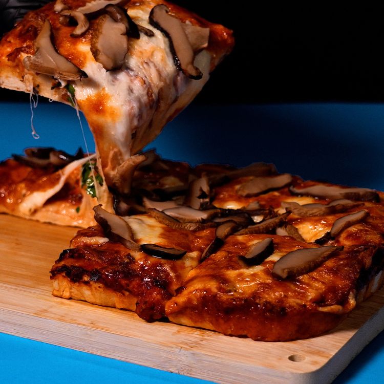 Tomato sauce, mozzarella, mushrooms, parmesan, herb seasoning